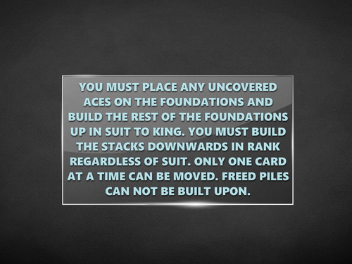 You must place any uncovered Aces on the foundations and build the rest of the foundations up in suit to King.